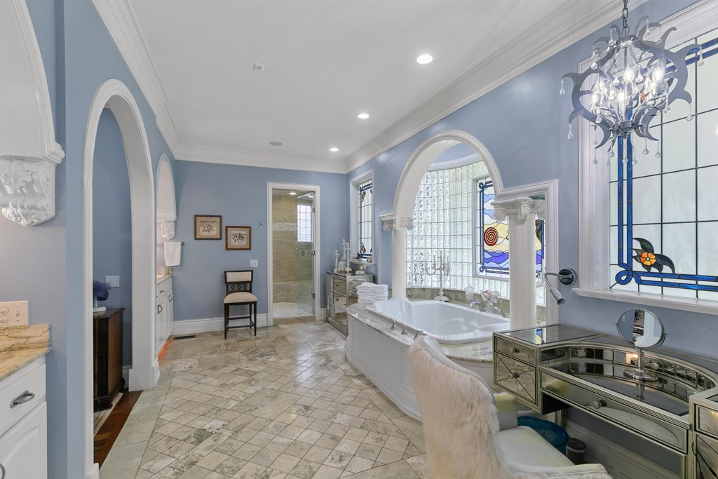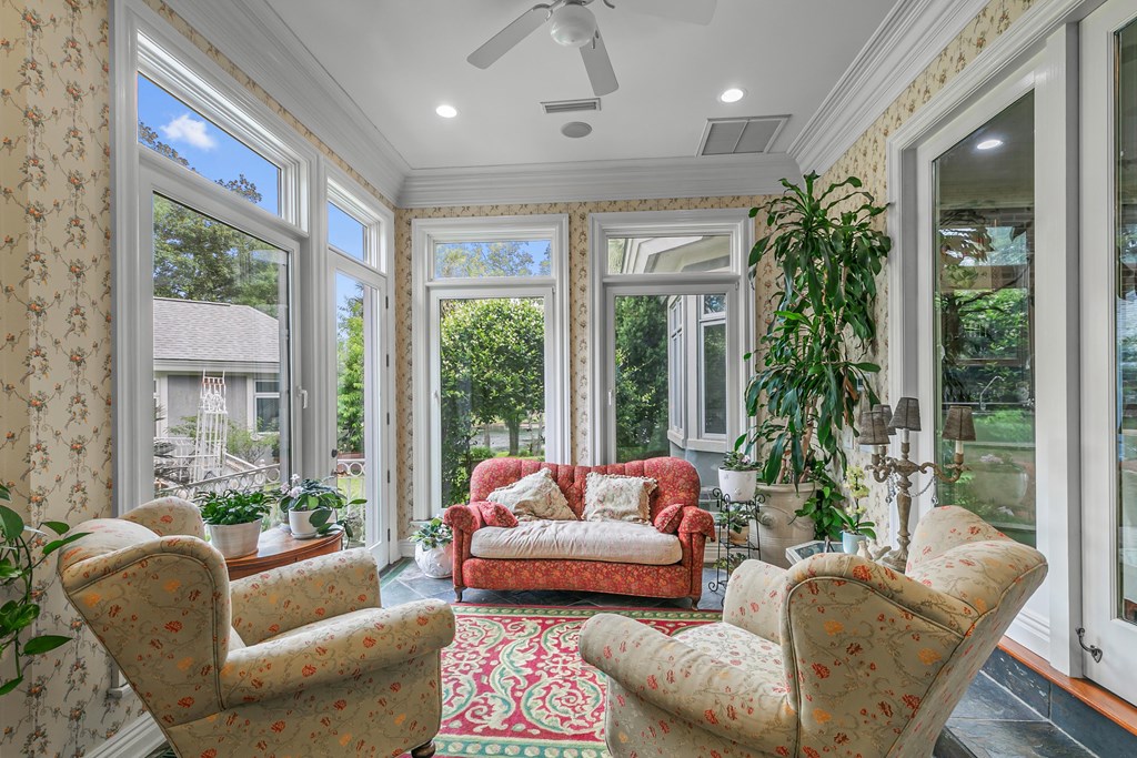 Welcome to an extraordinary executive estate in the heart of the highly sought-after Highlands Subdivision on Royal Highlands Drive. Nestled on 2 pristine acres with breathtaking lake views on one side and golf course views on the other, this custom-designed masterpiece offers the ultimate in privacy, craftsmanship, and refined Southern living. This expansive residence features 6 bedrooms, 4 full baths, and 2 half baths, thoughtfully designed to accommodate multigenerational living or a large family. The grand foyer welcomes you with custom stained-glass doors, marble wainscoting, and handcrafted crown molding you simply must see to believe. From the Brazilian Rain Forest hardwood floors to the two elegant sunrooms, every inch of this home speaks of timeless quality. The grand room is a showstopper, anchored by a gas fireplace and flooded with natural light from large operable windows. The kitchen is a chef's dream: oversized and open, featuring a 6-burner gas stove, double ovens, warming drawer, ice machine, and toe/under-cabinet lighting throughout. The adjacent bar area, large pantry, and custom cabinetry with pull-outs make this a true entertainer's space. Retreat to your massive primary suite with separate his and hers walk-in closets, spa-like ultra tub & sauna, and a luxurious steam shower with dual heads. The children's wing includes 4 spacious bedrooms, Jack & Jill baths with slate showers, oversized closets, its own den/playroom, and even a dedicated laundry room.